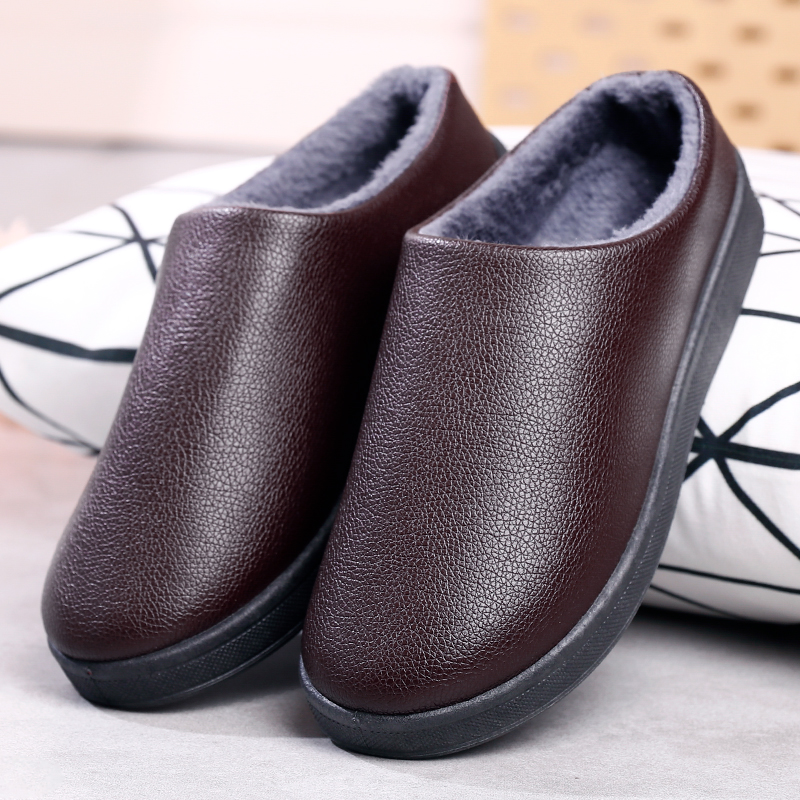 棉鞋居家防水加厚防滑软底PU面棉拖鞋冬季室内休闲保暖散步男士鞋,广东 广州