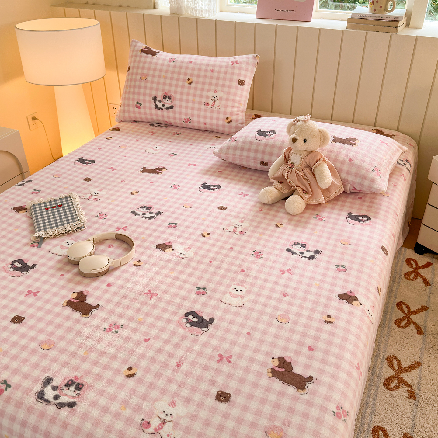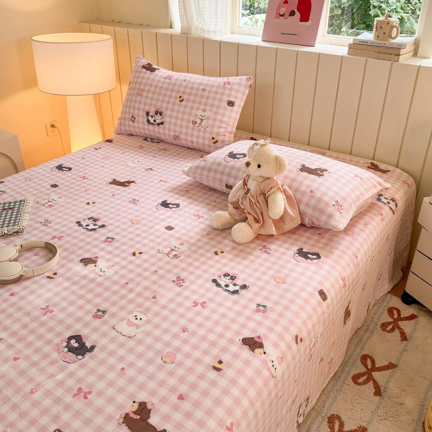冬季加厚牛奶绒床单单件2025新款宿舍单人加绒法兰珊瑚绒毛绒被单,江苏 南通