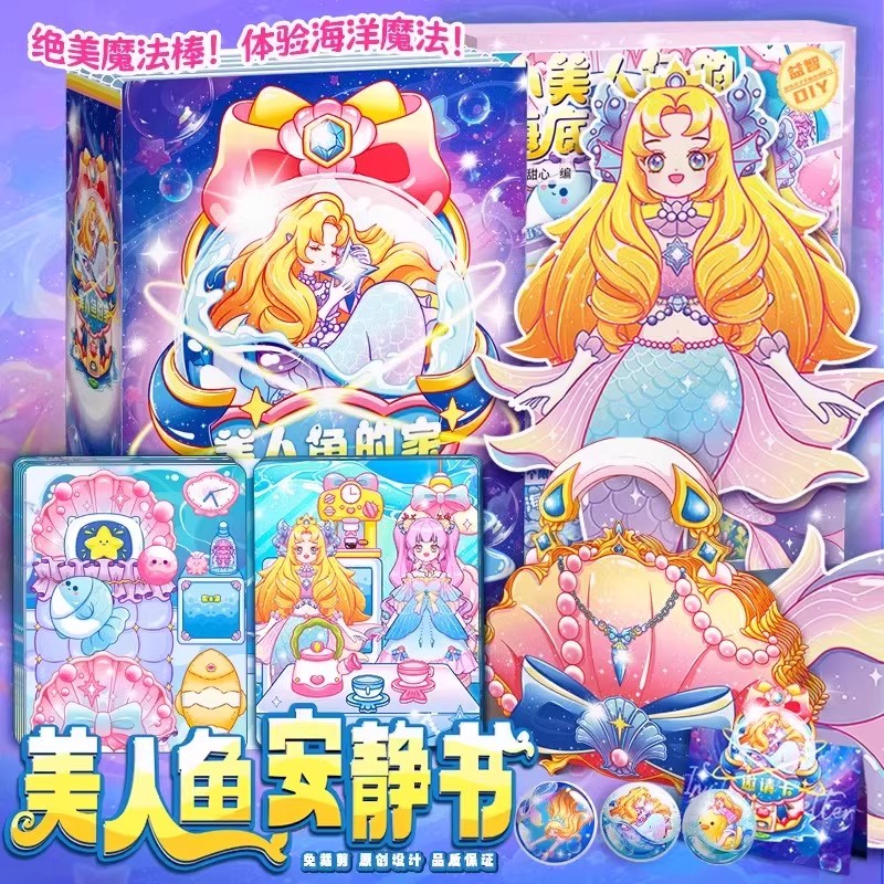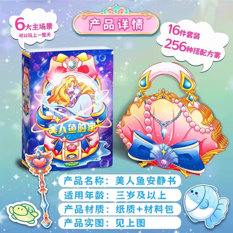 美人鱼公主换装安静书新款免剪裁女孩手工diy材料包儿童贴画玩具6,浙江 金华