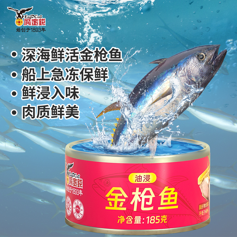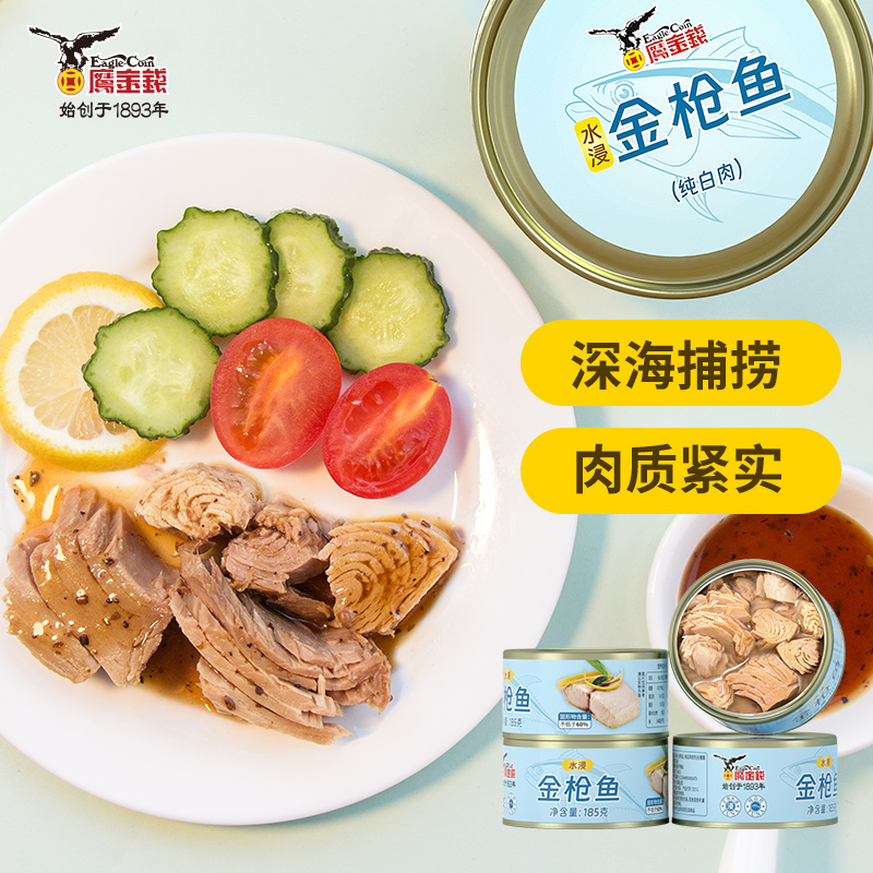 鹰金钱水浸油浸金枪鱼185g/罐即食海鲜吞拿鱼肉罐头寿司沙拉材料