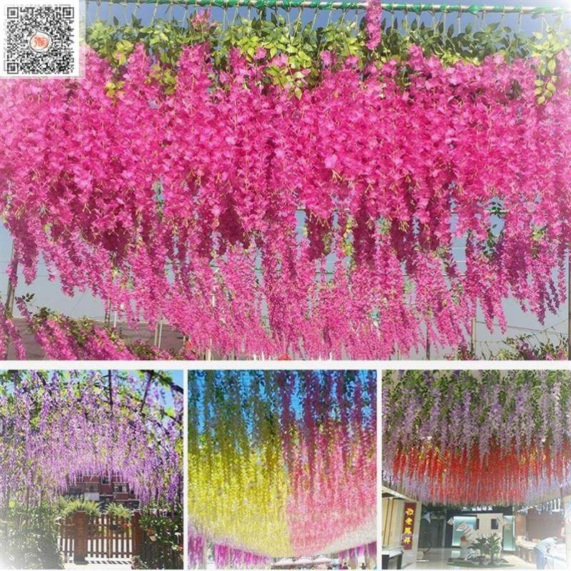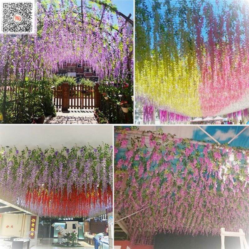 客厅仿真花藤豆花藤蔓遮挡壁挂吊篮洋兰花紫藤创意空调酒店塑料拱,山西 大同