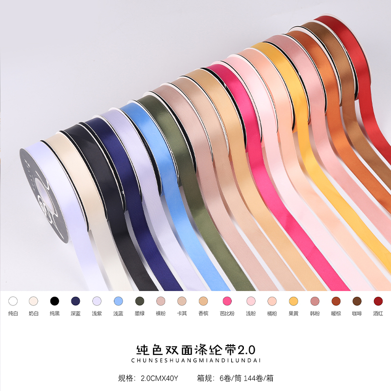 2.0CM纯色双面涤纶丝带鲜花束包装彩绑带绸缎带花艺烘焙店diy材料,浙江 金华