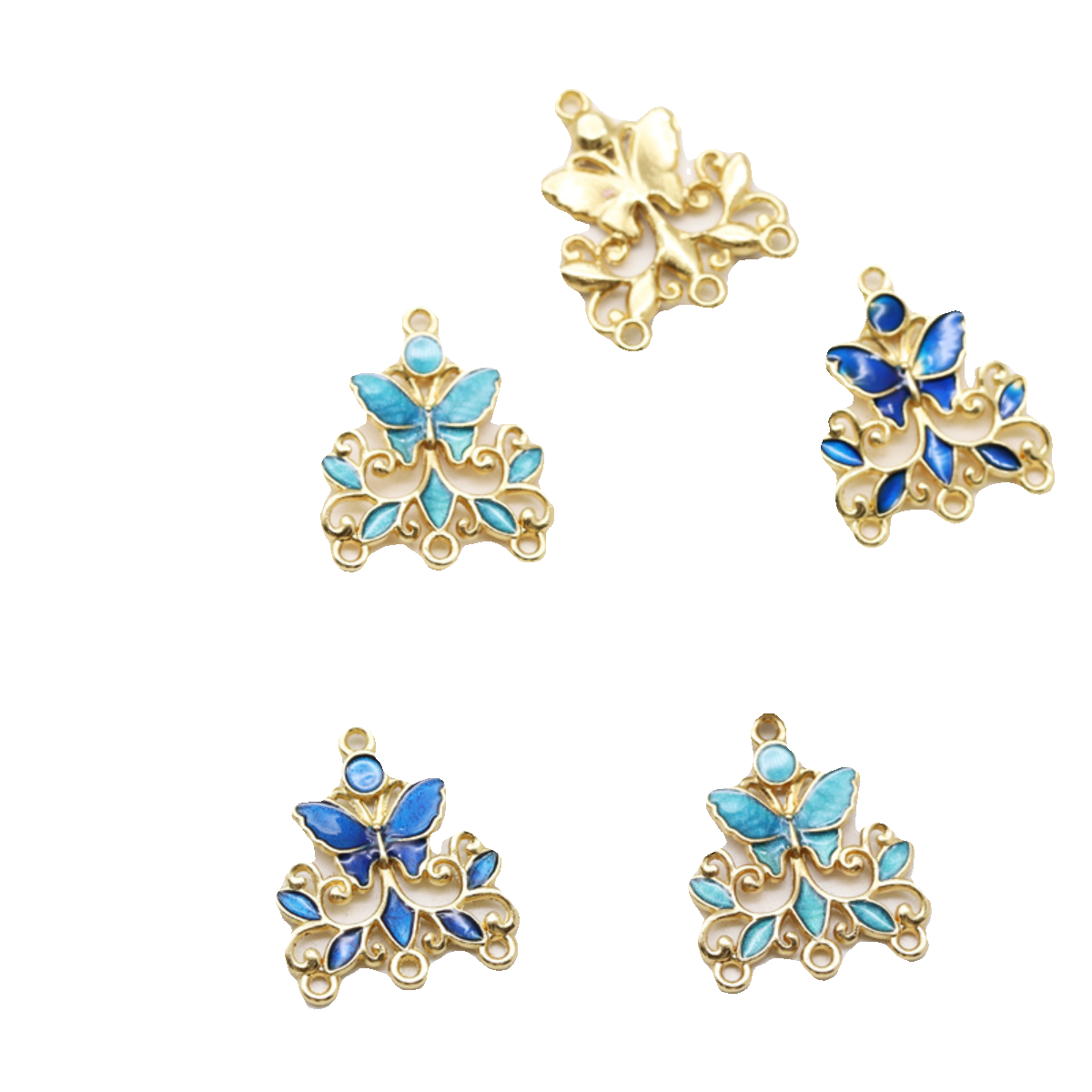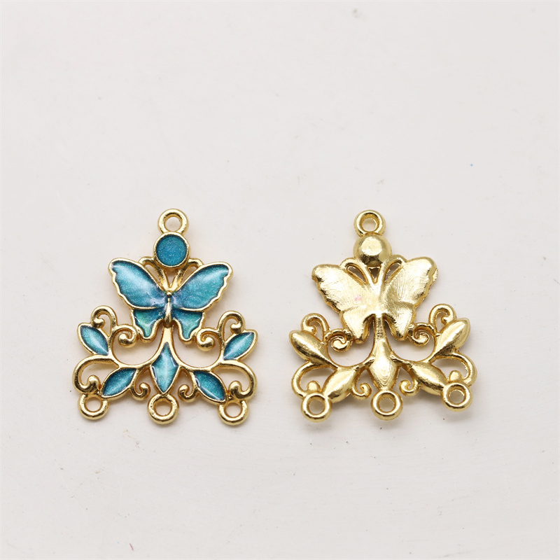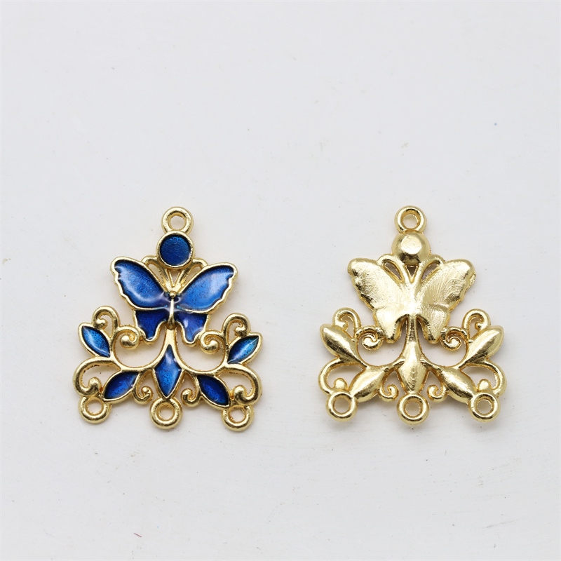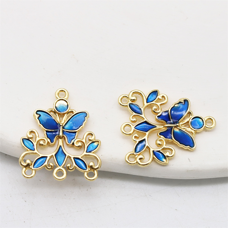 5个价合金19*23mm仿烧蓝三孔蝴蝶吊牌diy古风发簪步摇流苏连接片,浙江 金华