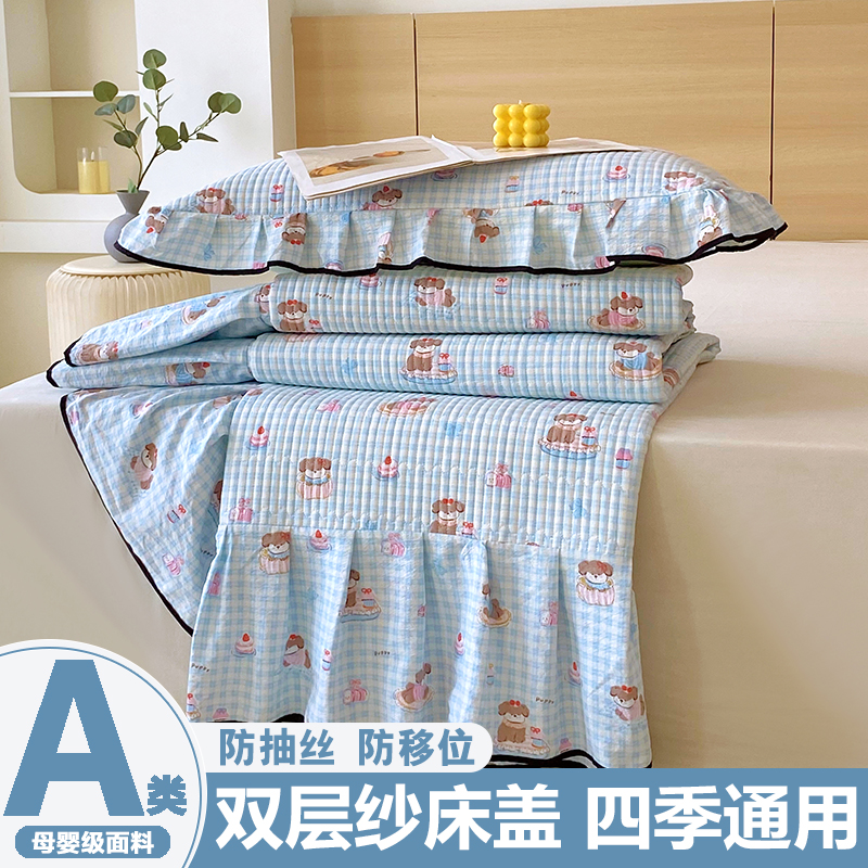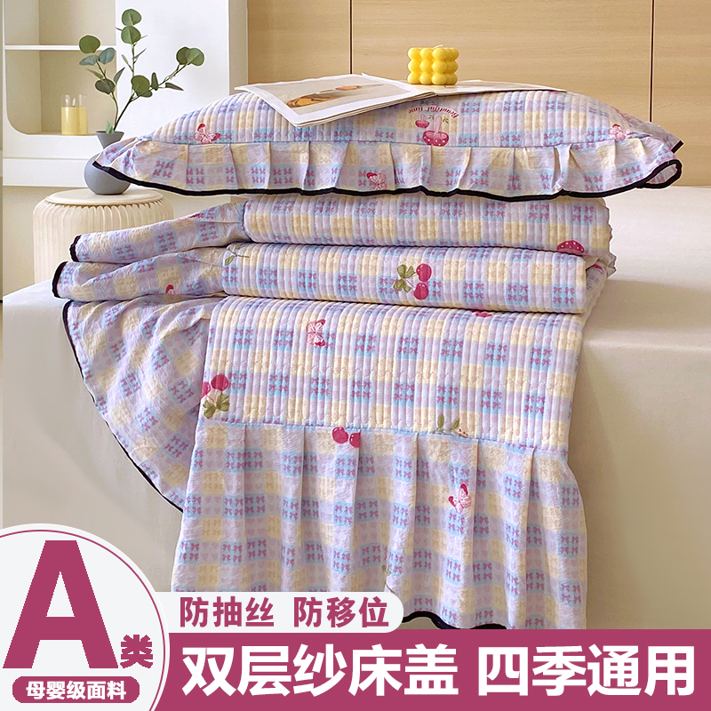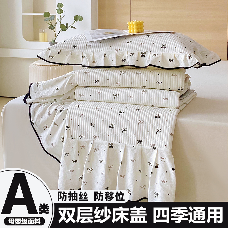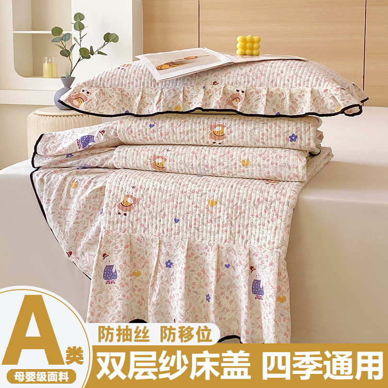 加厚双层纱夹棉花边床盖单件榻榻米绗缝床单铺炕盖三件套四季通用
