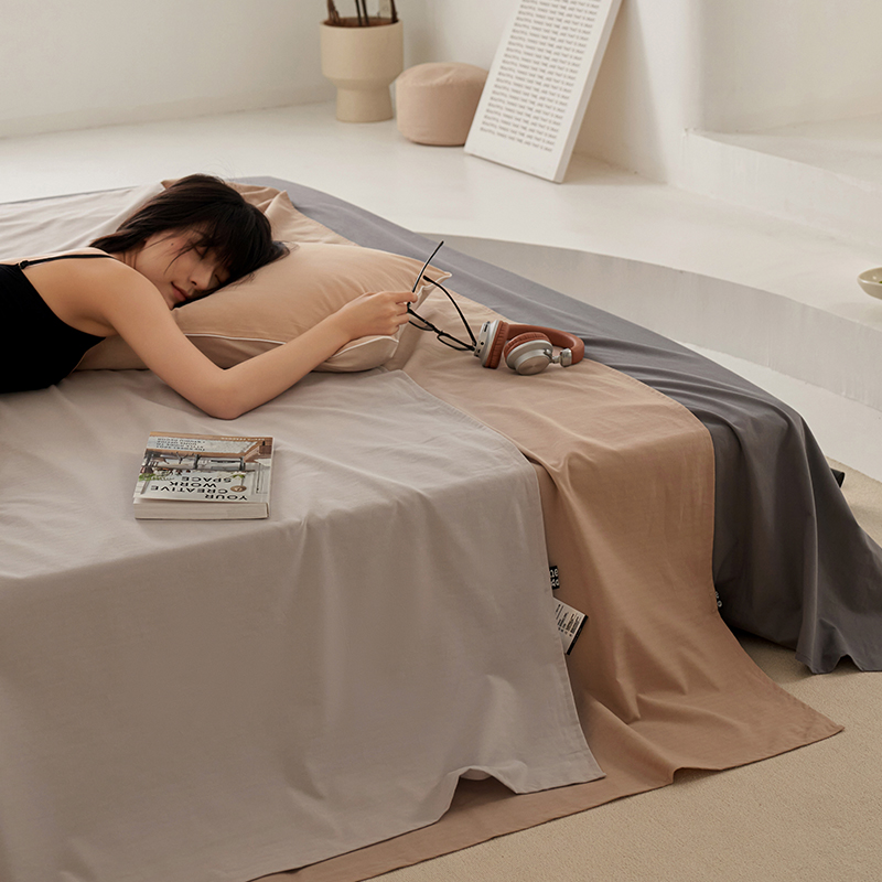 秋冬母婴级A类纯色提花全棉磨毛床单单件加厚纯棉被单三件套单人,江苏 南通