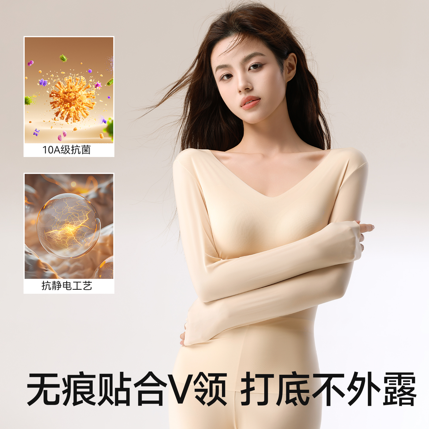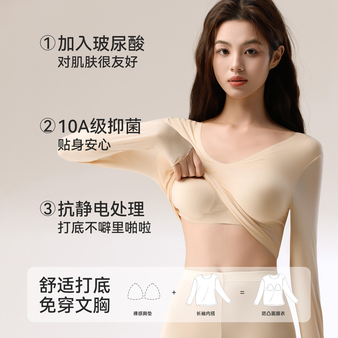 肉色美肤肌底衣女带胸垫的超薄皮肤衣保暖内衣秋衣隐形内搭打底衫,上海
