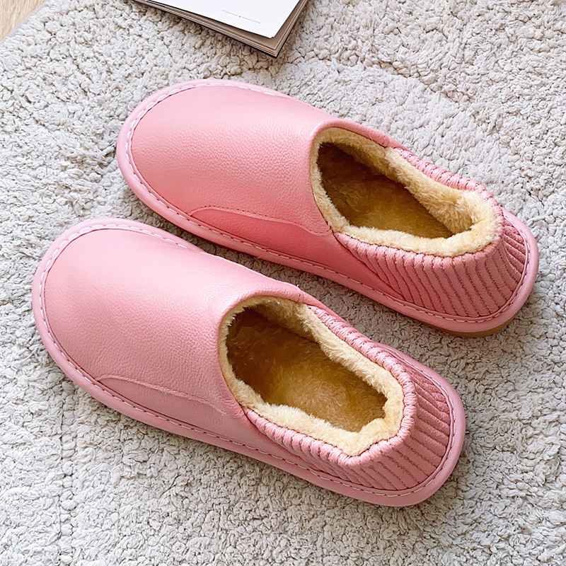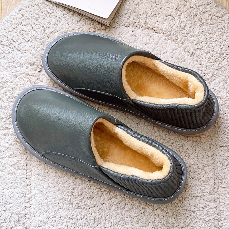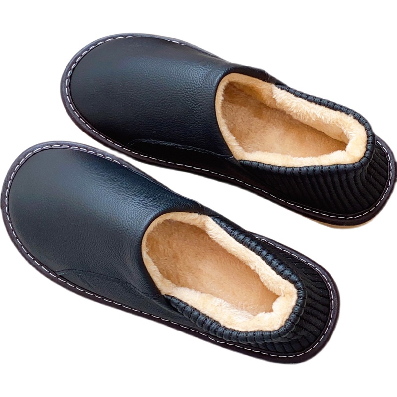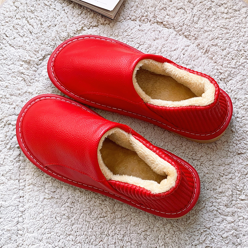 全牛皮面包脚带后跟防水居家冬季棉拖鞋男女室内防滑软底真皮棉鞋,浙江 嘉兴