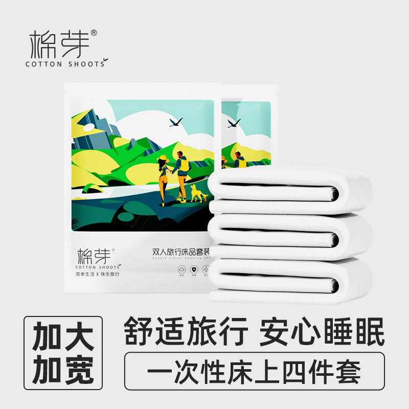 棉芽一次性床单被罩枕套旅行隔脏四件套加厚双人床上用品便携套装,广东 广州