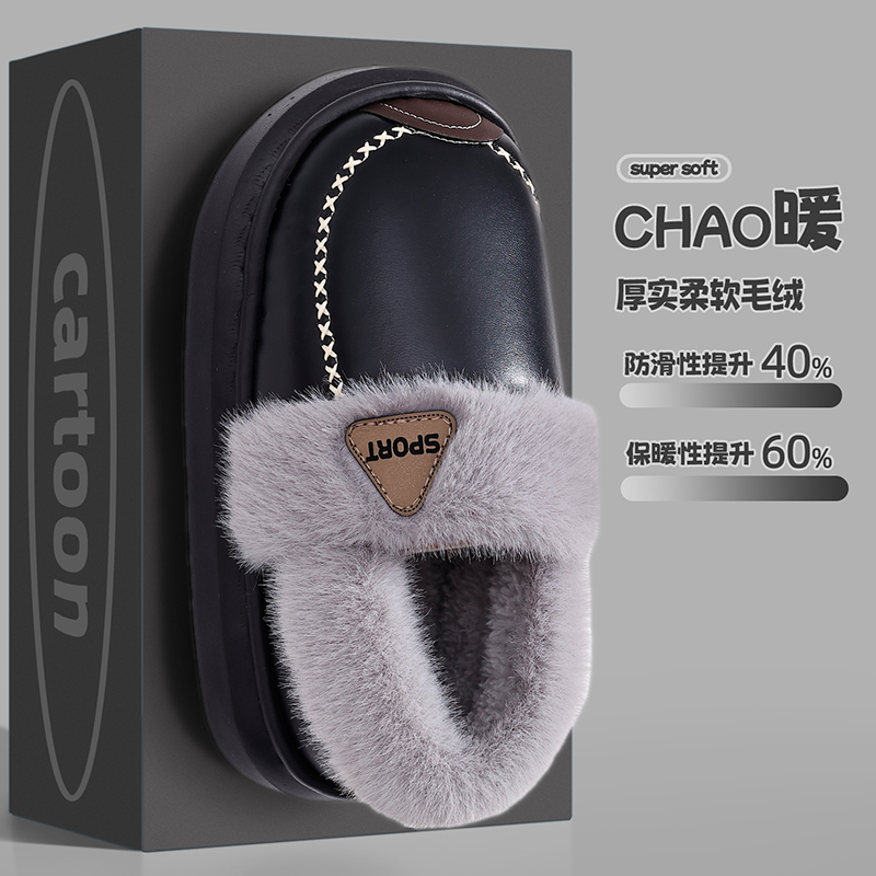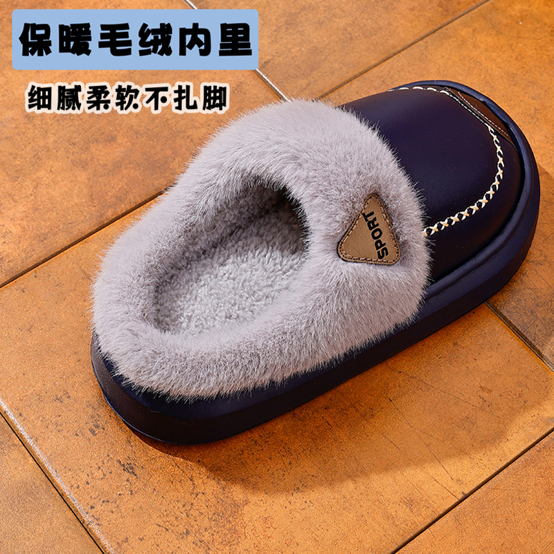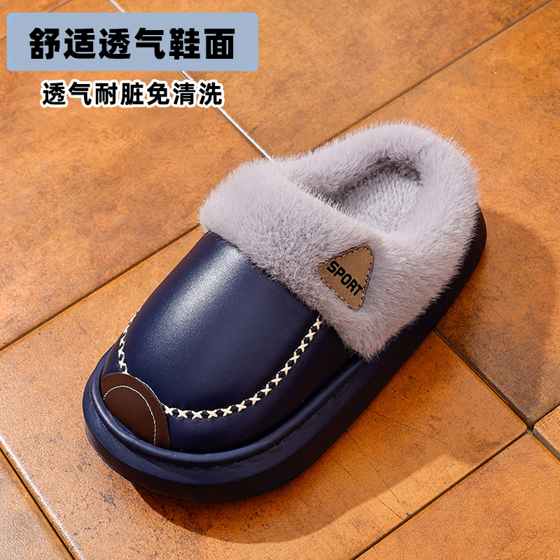 EVA儿童棉拖鞋男童PU皮防水软底防滑加绒厚亲子棉鞋居家冬季保暖
