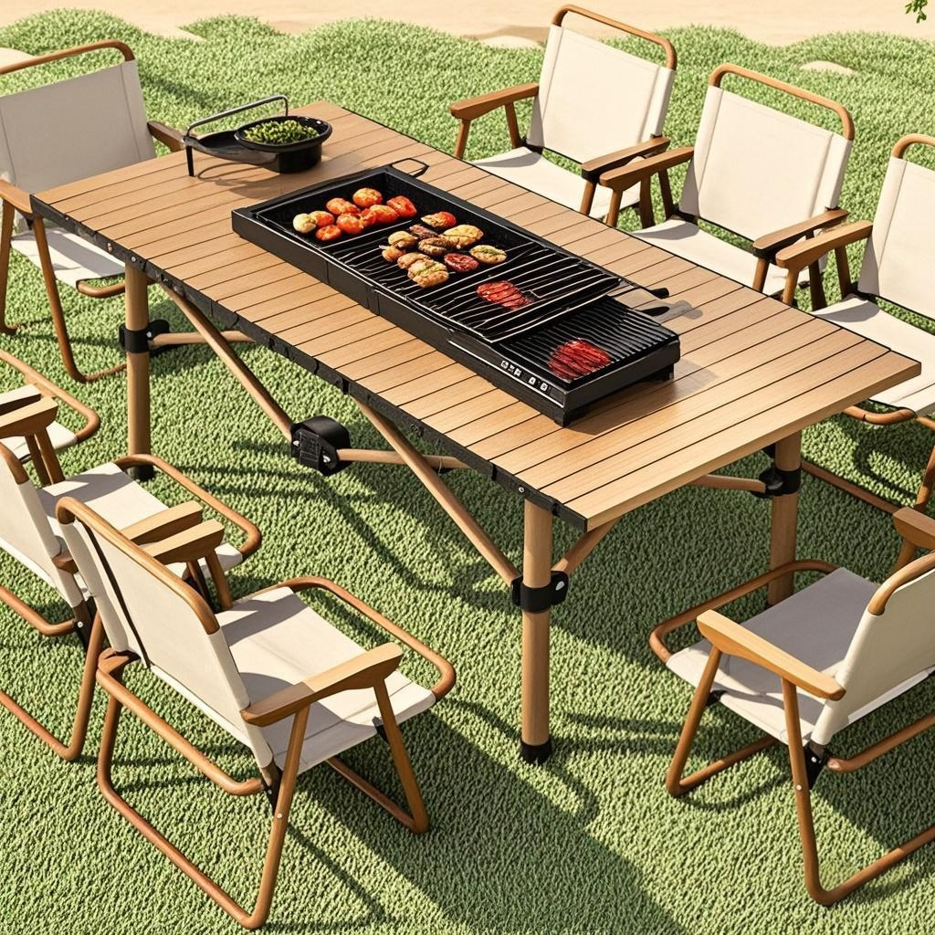露营桌椅便携式蛋卷桌野餐桌椅户外折叠椅子桌子一体露营全套装备