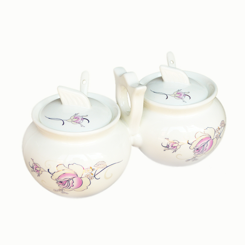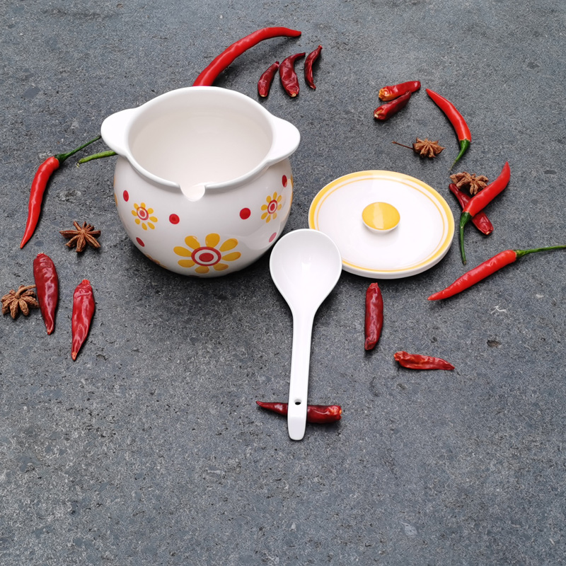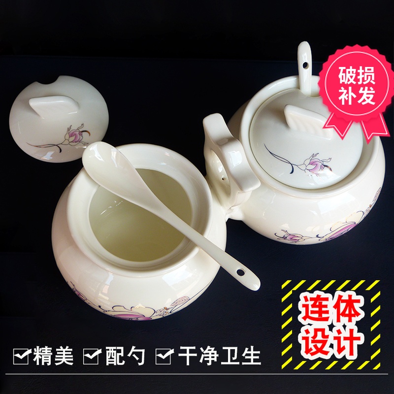 精美陶瓷调味罐家用厨房用具用品带勺调料调味盒有盖油盐罐猪油罐,湖南 娄底