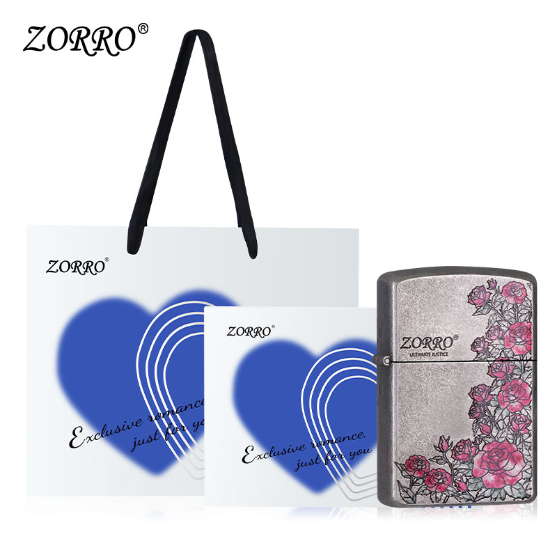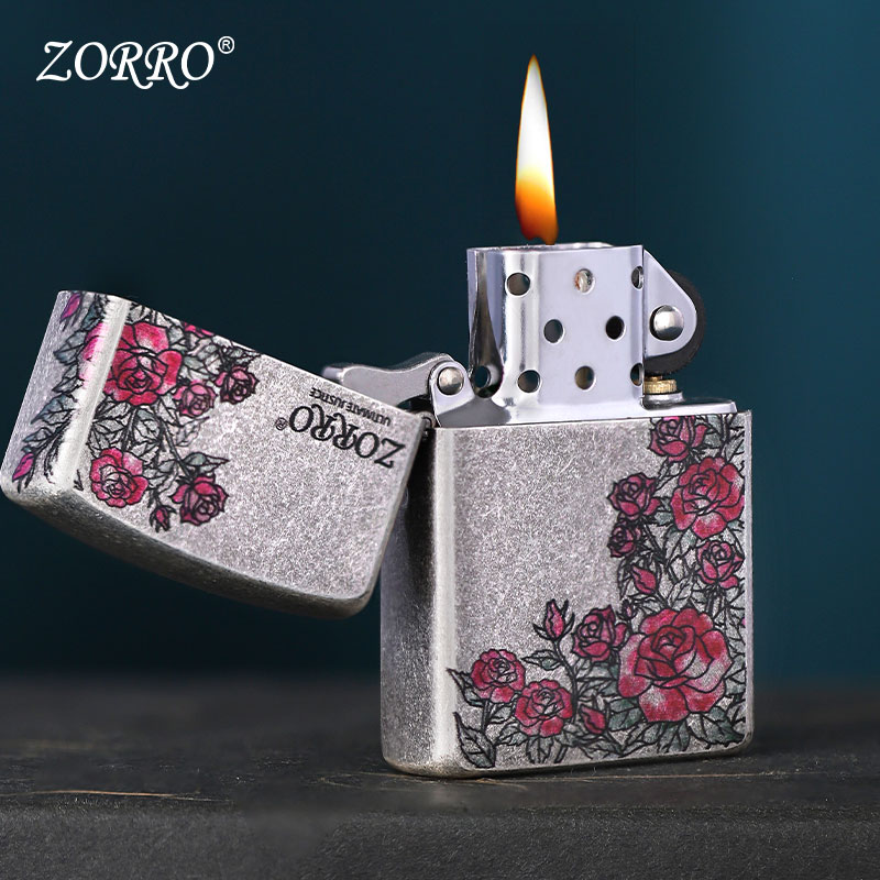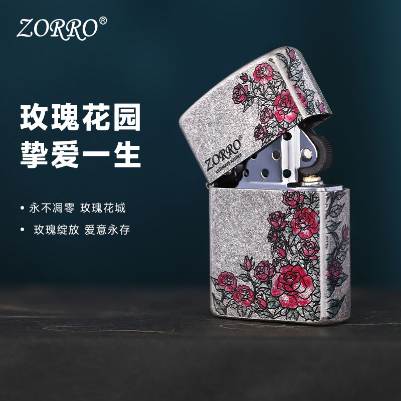 ZORRO佐罗官方旗舰煤油打火机生日礼物高档防风送男朋友玫瑰花园