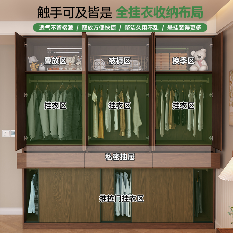 定制橡木推拉门衣柜到顶新款分段式平开推拉一体小户型卧室衣橱