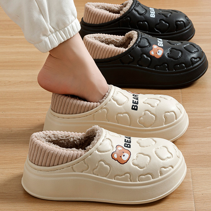 防水棉拖鞋女冬季包跟保暖居家情侣室内月子鞋加绒厚底棉鞋男外穿