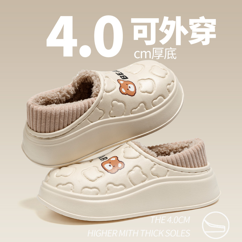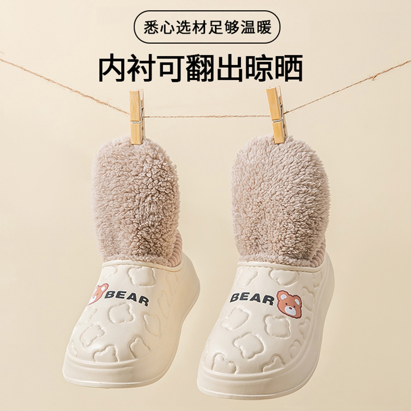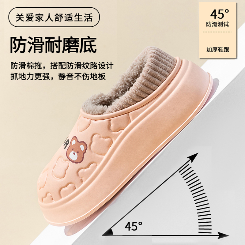 防水棉拖鞋女冬季包跟保暖居家情侣室内月子鞋加绒厚底棉鞋男外穿,浙江 金华