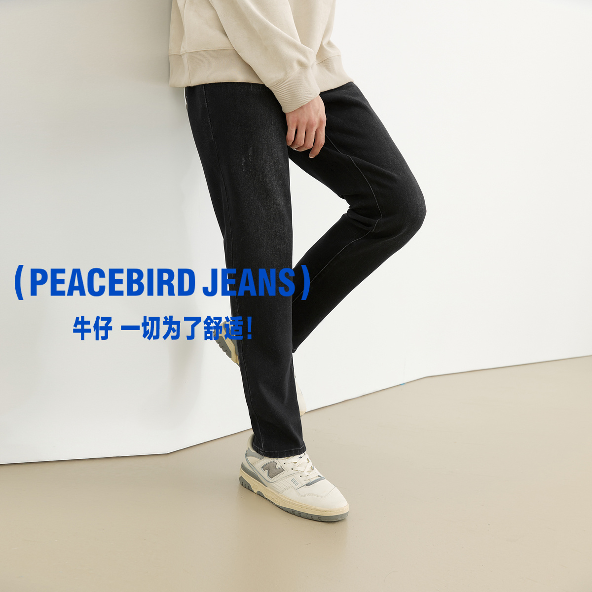 太平鸟男装 牛仔裤男潮牌深灰紧身品质复古水洗牛仔长裤,浙江 宁波