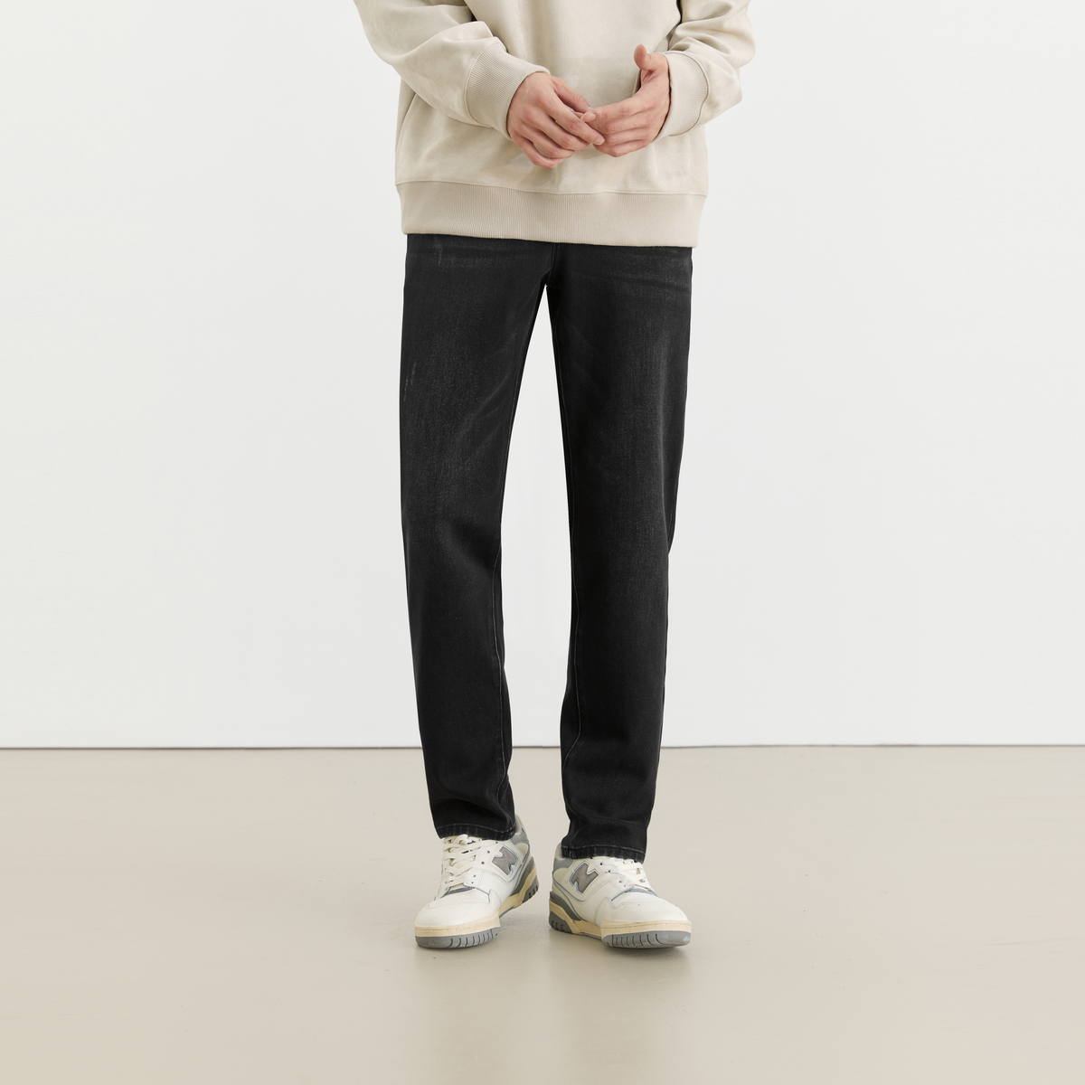 太平鸟男装 牛仔裤男潮牌深灰紧身品质复古水洗牛仔长裤