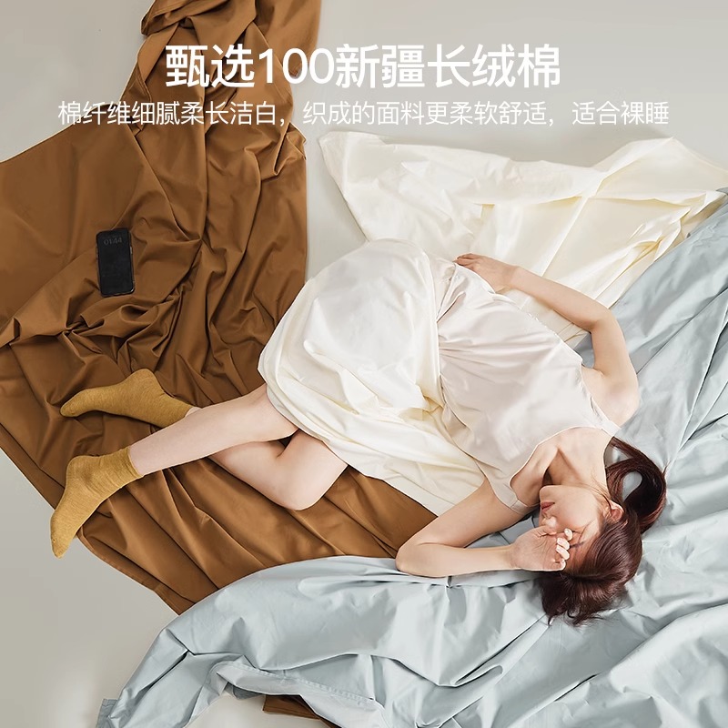 无印良品100s高端长绒棉磨毛床单单件全棉加厚纯色被单枕套三件套