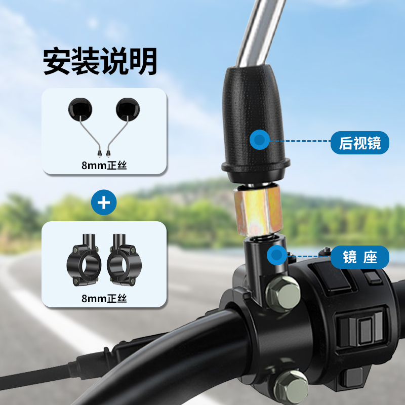 电动车后视镜通用电瓶车反光镜小电动自行车镜子电车大视野超广角