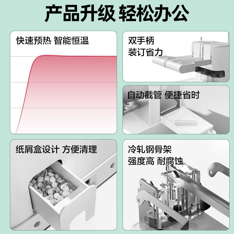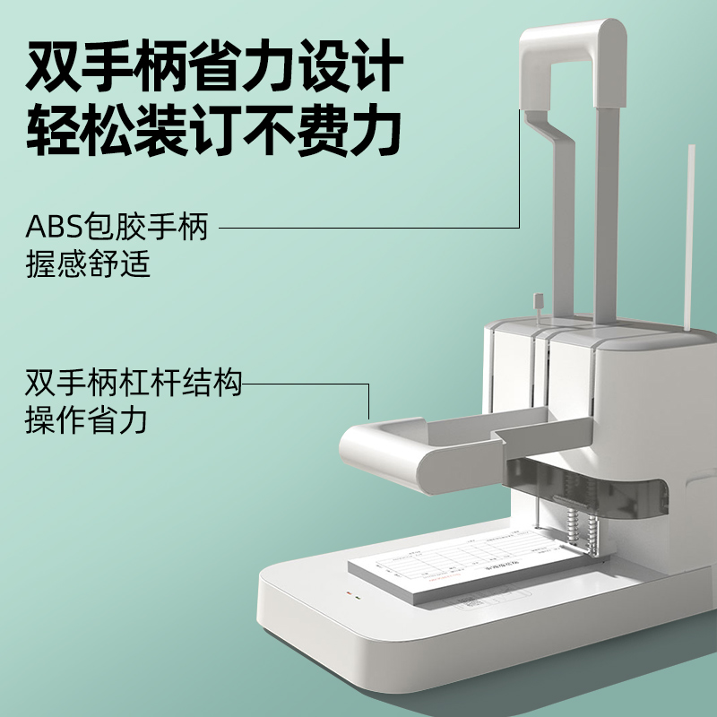 得力3876A财务凭证装订机档案办公装订专用会计文件票据手动打孔机热熔胶铆管胶管胶装打孔器凭证电动装订机