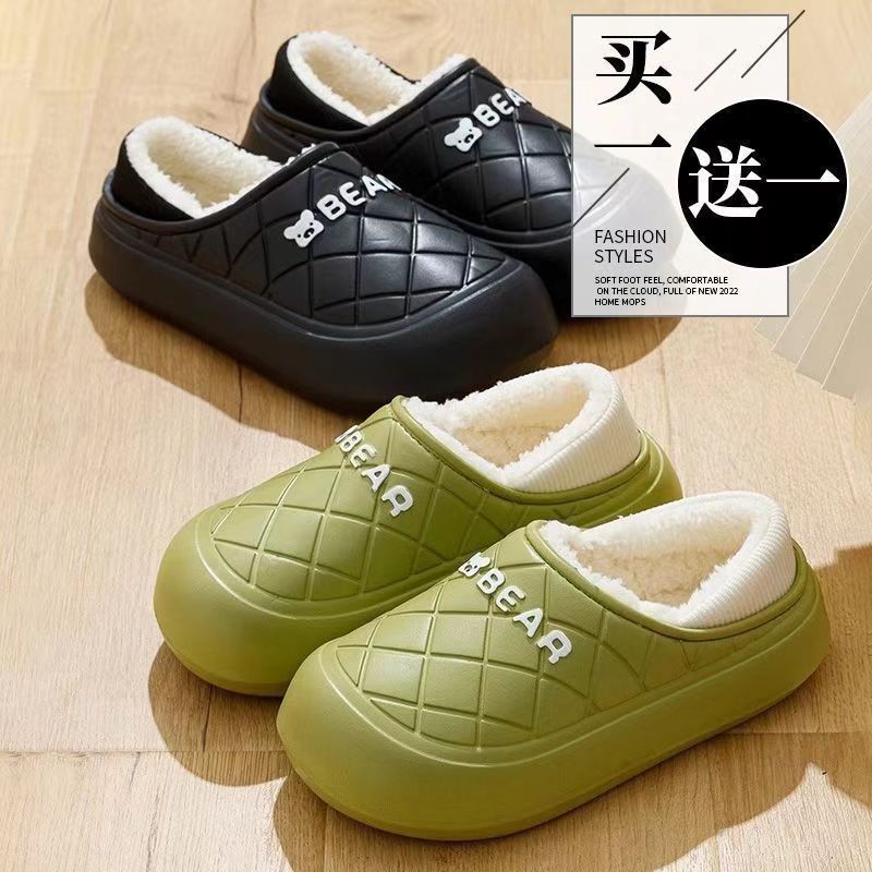 买一送一防水棉拖鞋女士冬季室内家居情侣加绒保暖包跟棉鞋男冬款,广东 揭阳