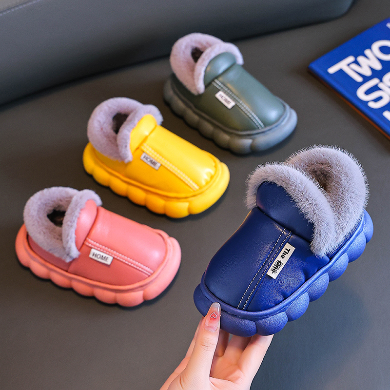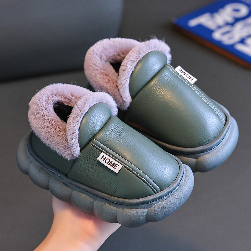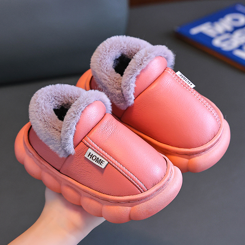 儿童棉鞋秋冬季男童皮面防水防滑居家鞋中大童保暖宝宝包跟棉拖鞋,浙江 金华