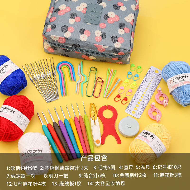 钩针手工编织工具全套装软柄钩针脑线diy零基础材料包,浙江 丽水