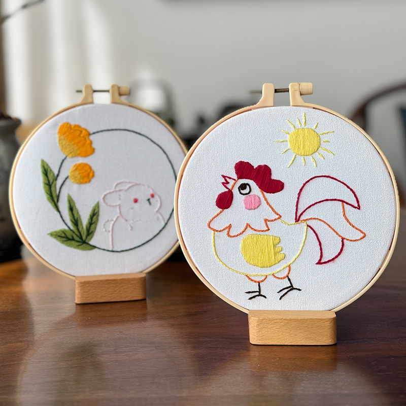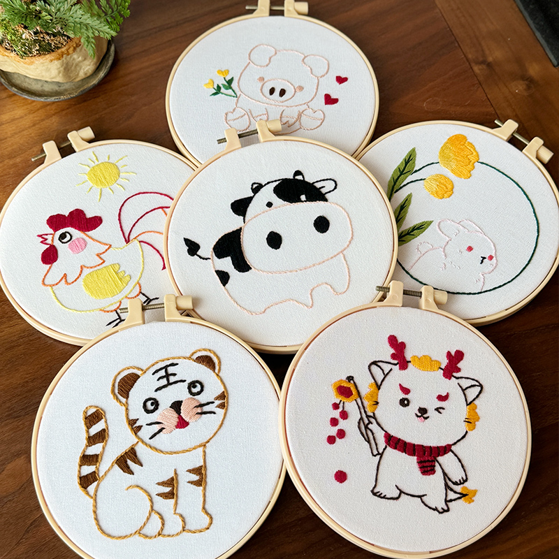 指间非遗鲁绣儿童手工刺绣十二生肖diy材料包塑料针简单布艺绣花,山东 青岛