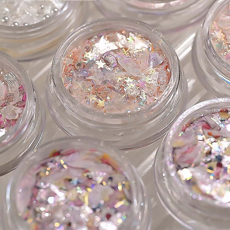 细闪星河云锦粉2025新款网红偏光欧泊珍珠圣诞材料包指甲装饰贴片,浙江 金华