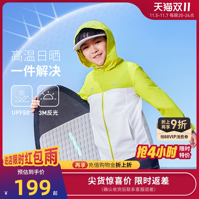 Nike 3brand儿童防晒衣男童凉感外套皮肤衣夏季女童大童遮阳风衣