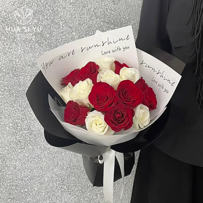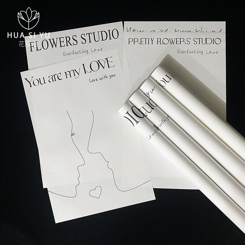 INS简约网红纸英文鲜花花束白色礼品字母包装纸花店花艺材料防水