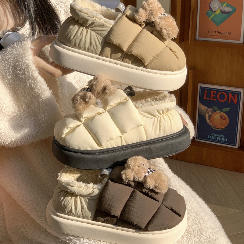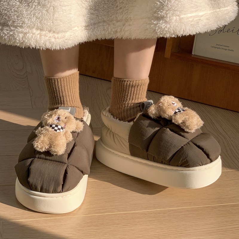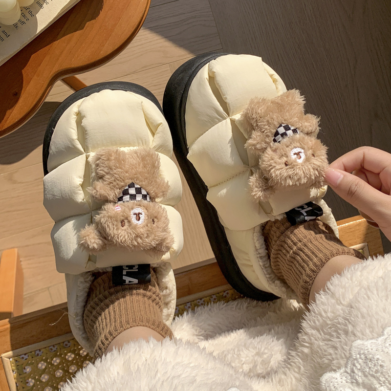 小熊棉拖鞋女冬季2024新款防水包跟棉鞋加绒可外穿卡通厚底居家男,浙江 宁波