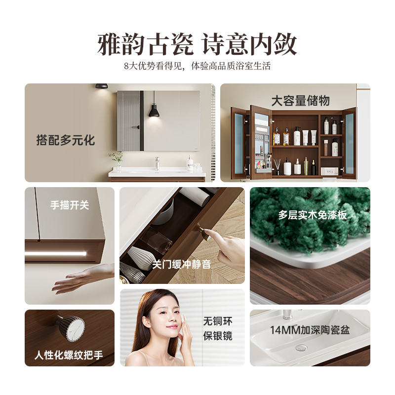 浪鲸浴室柜组合中古风卫生间家用洗漱盆带骨骼线洗手台定制280,广东 佛山