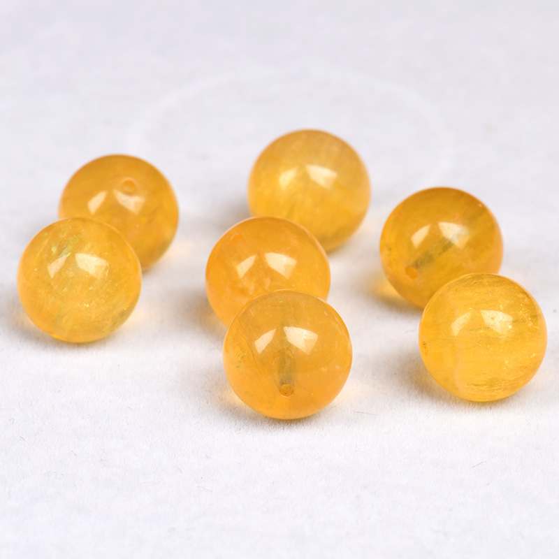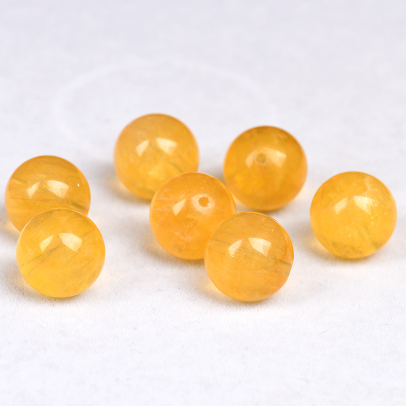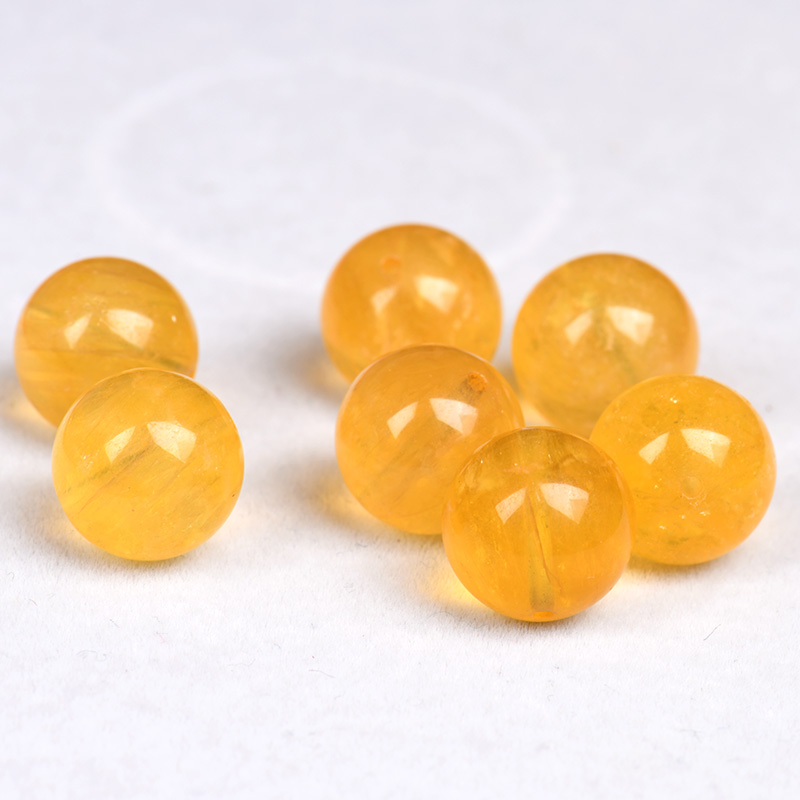 天然黄水晶拉丝荧石散珠子diy饰品配件材料串珠单珠圆珠黄兔毛色