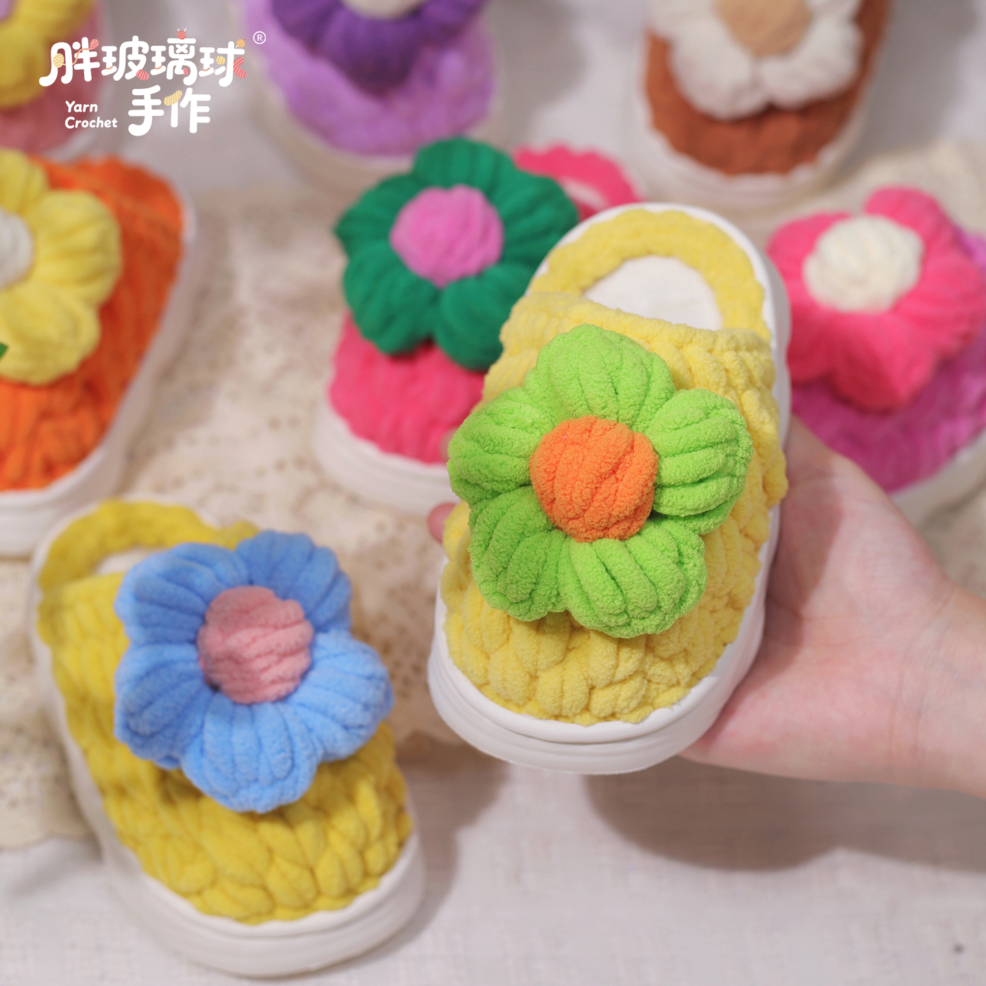 手工编织冰条粗毛线可爱儿童拖鞋钩织宝宝鞋子diy自织材料包冬季,广东 广州