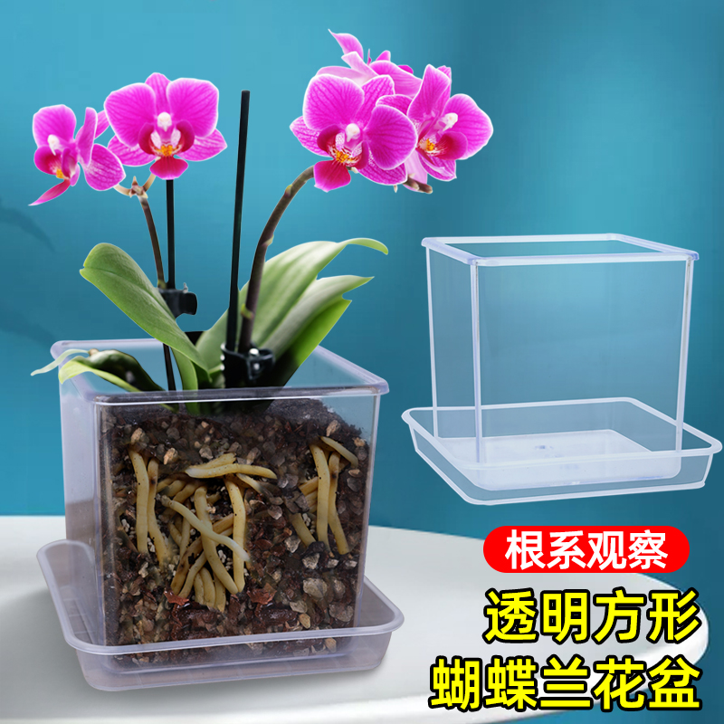高透明塑料方形带底透气桌面创意水苔石斛洋兰蝴蝶兰苔藓专用花盆,江苏 苏州