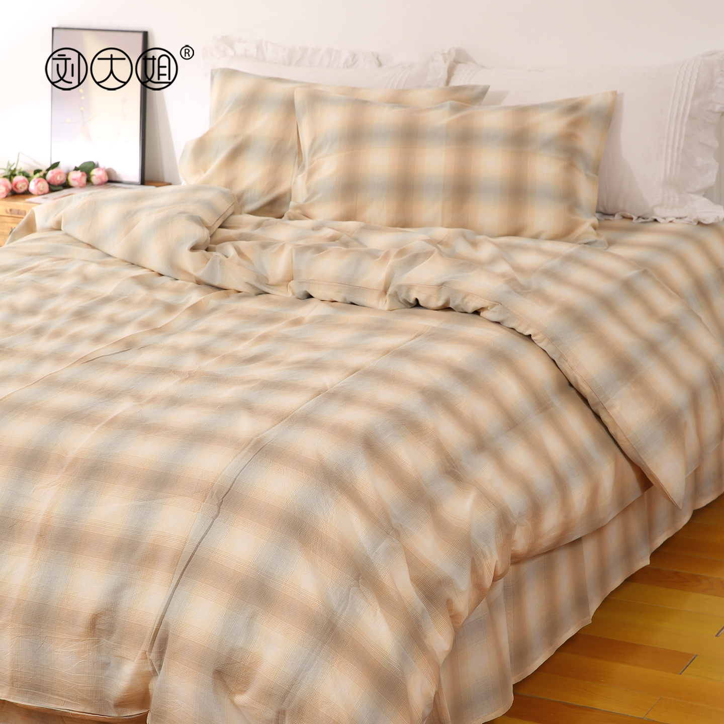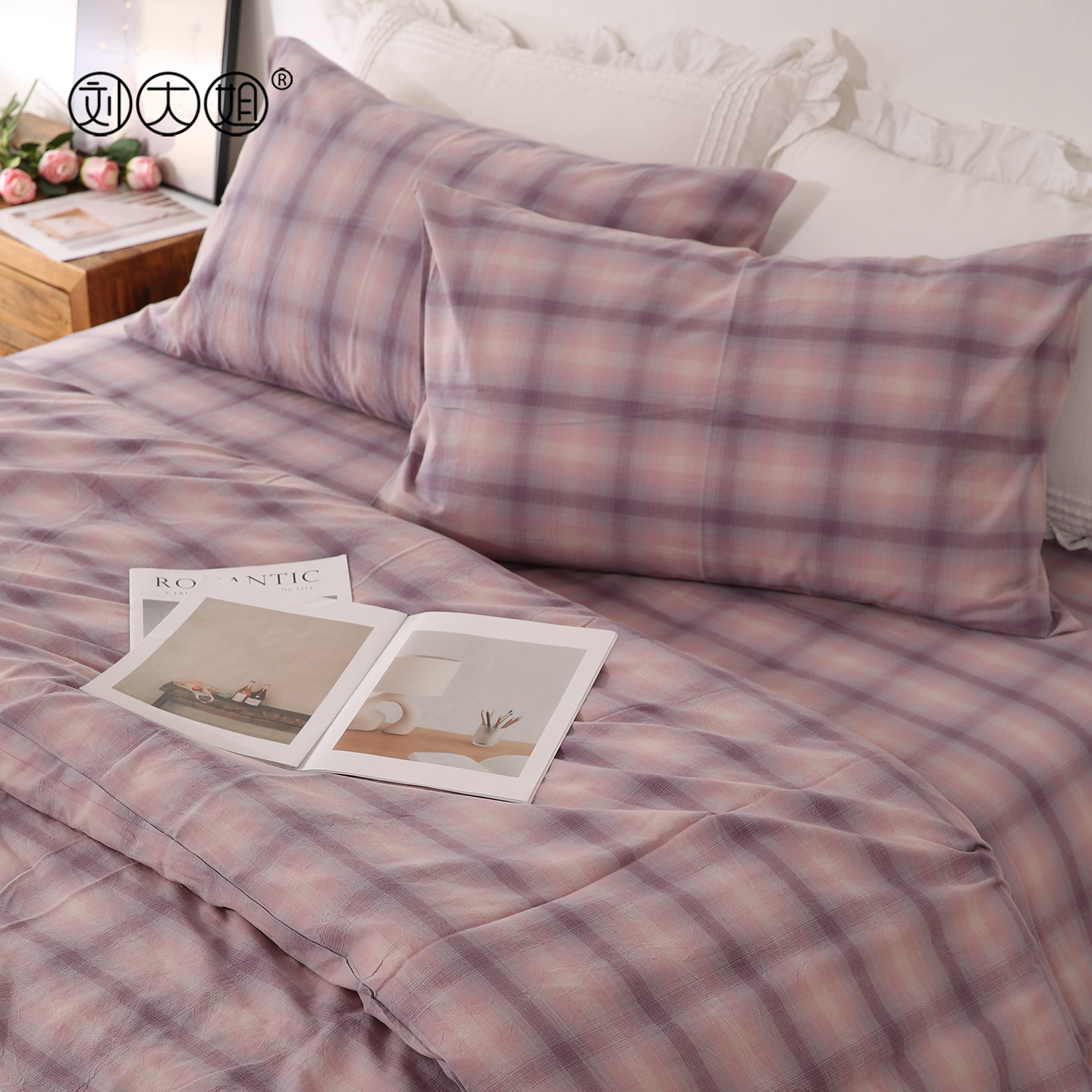 超绵软的色织纯棉水洗棉床单薄软透气适合祼睡亲肤床单被套枕套