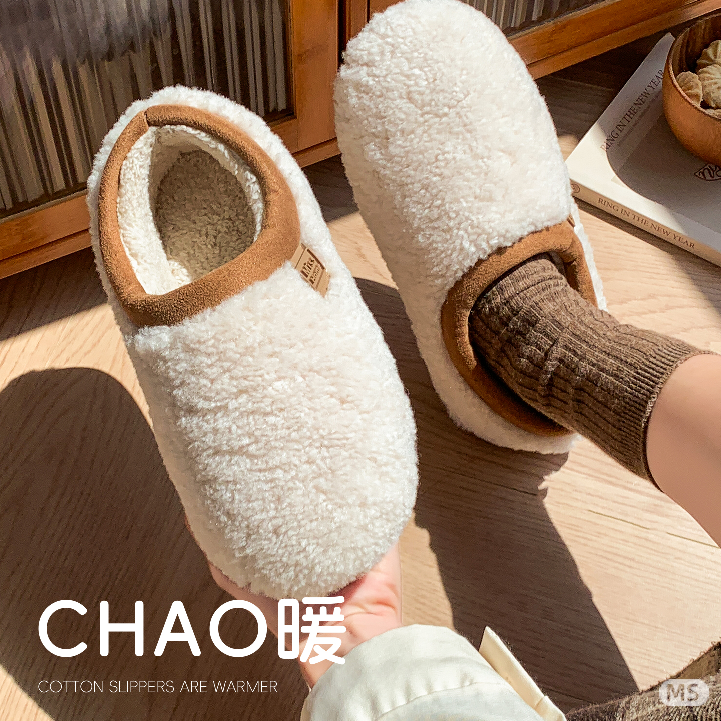 毛毛加绒冬天棉拖鞋女士冬季保暖外穿居家用包跟家居月子棉鞋男士,浙江 宁波