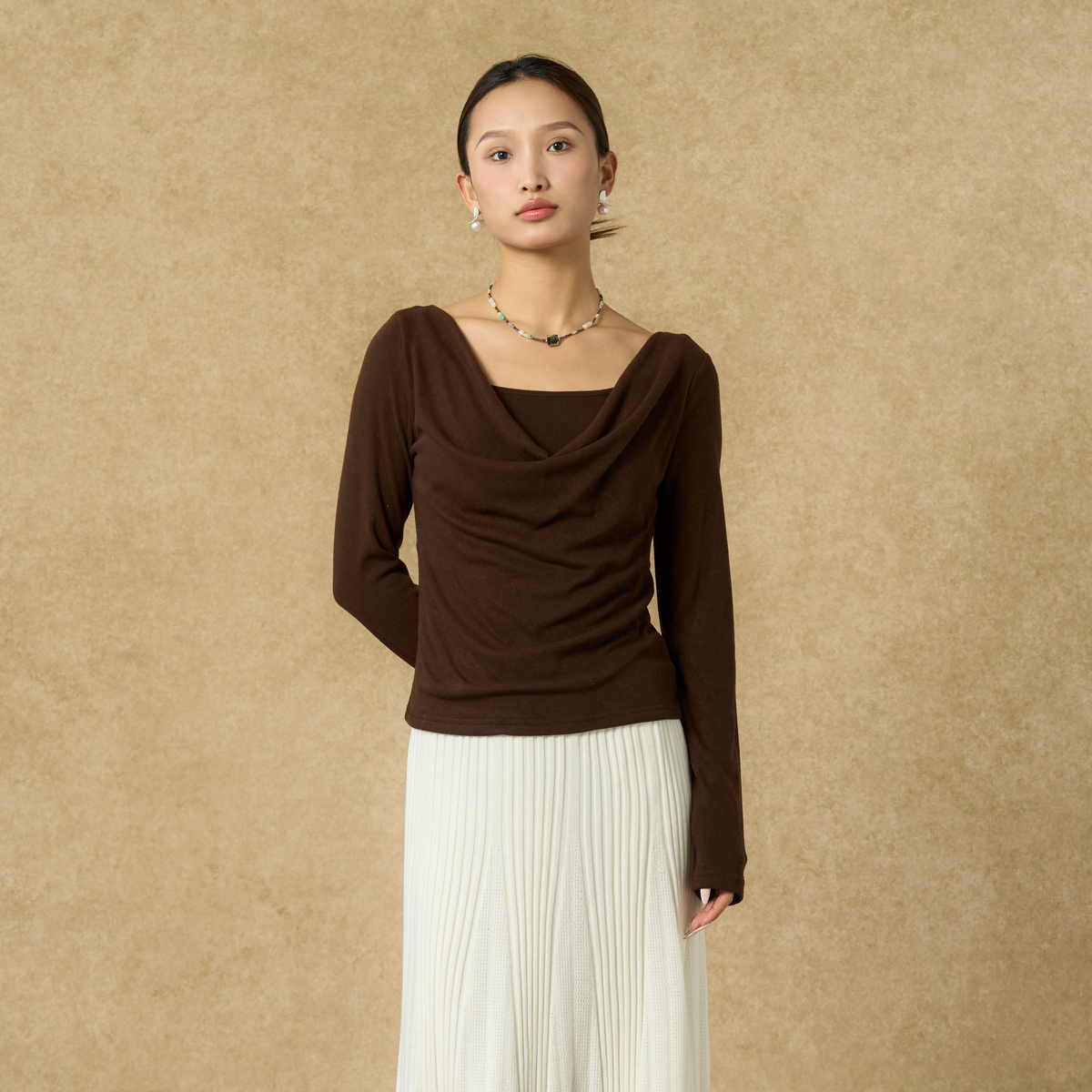 西町村屋气质小衫女装2025秋季新款韩系荡领设计感打底XHAC10397
