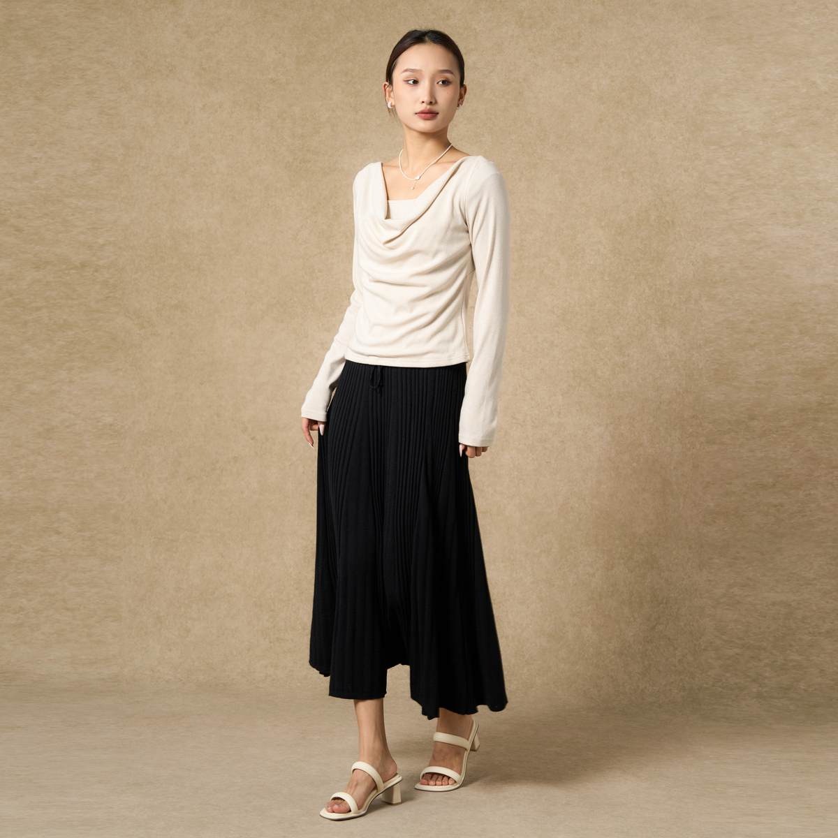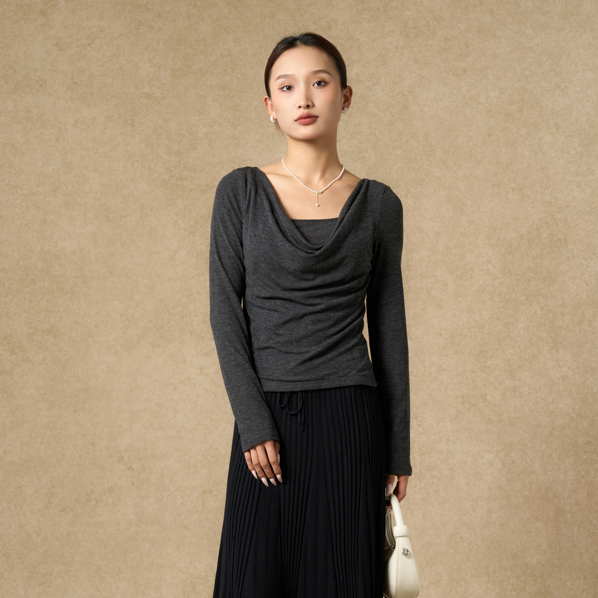 西町村屋气质小衫女装2025秋季新款韩系荡领设计感打底XHAC10397,浙江 杭州