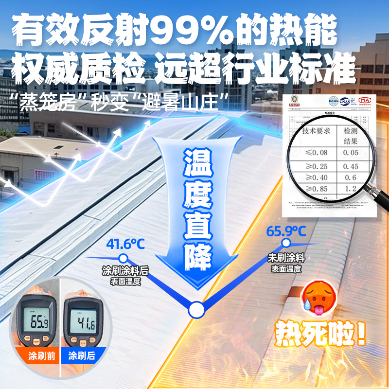 莱仕德屋顶隔热涂料楼顶外墙防水防晒材料彩钢瓦反射隔热降温油漆