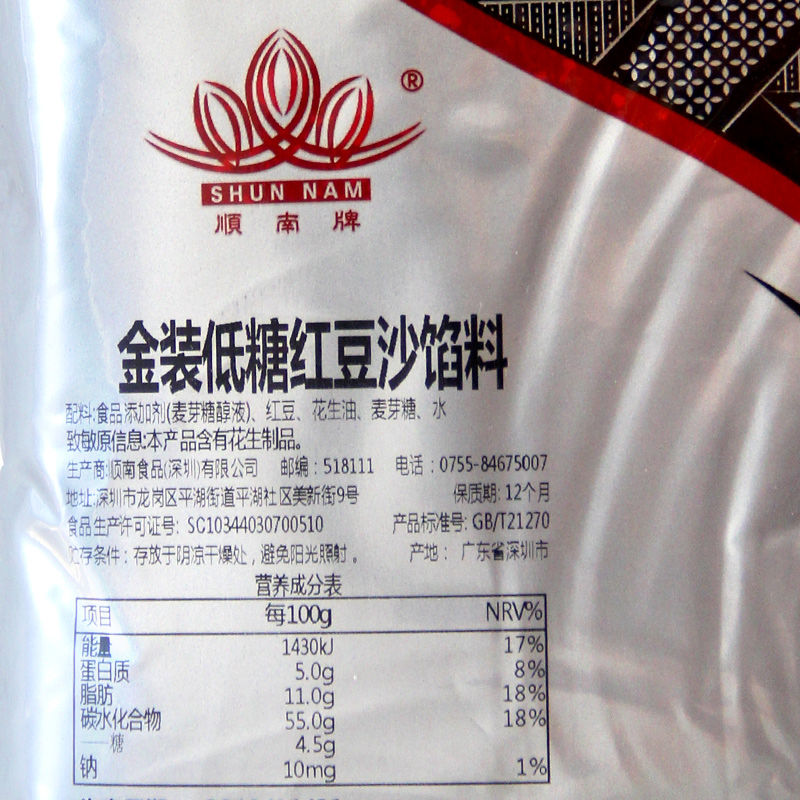 顺南月饼馅料低糖红豆沙馅冰皮材料家用包子莲蓉凤梨五仁奶黄500g,广东 深圳