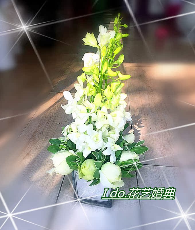 开业/婚礼/商场活动高端白玫瑰洋兰方樽鲜花摆台桌花沈阳实体速递