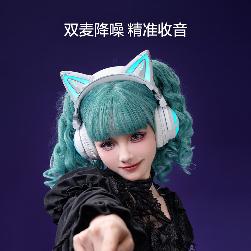妖舞猫耳耳机CE电竞少女头戴式蓝牙可爱无线耳机女生电脑游戏耳麦