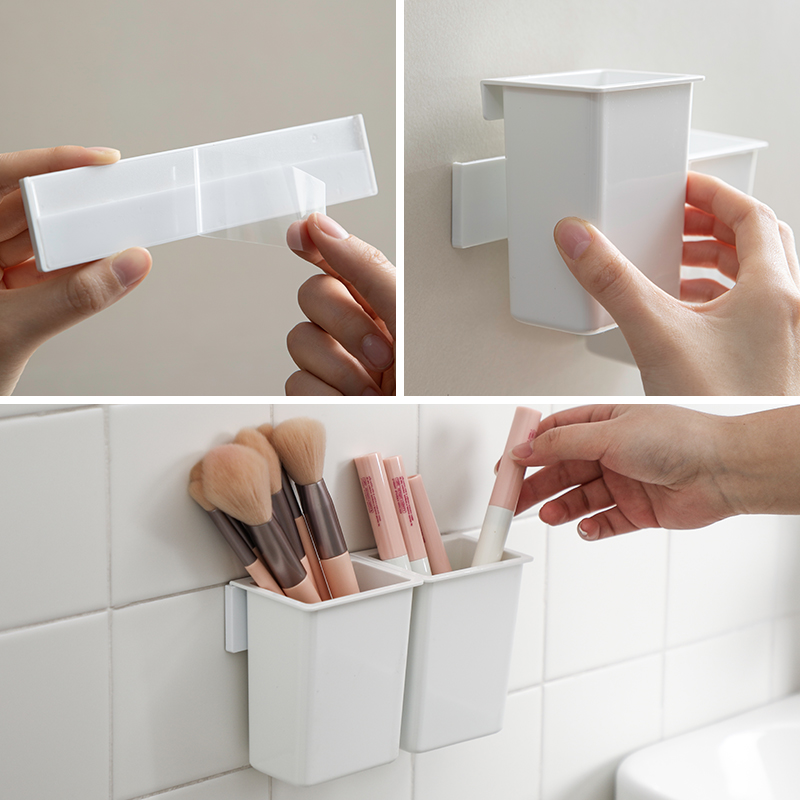 霜山挂式小物收纳盒桌面小文具整理盒化妆刷收纳桶办公塑料笔筒