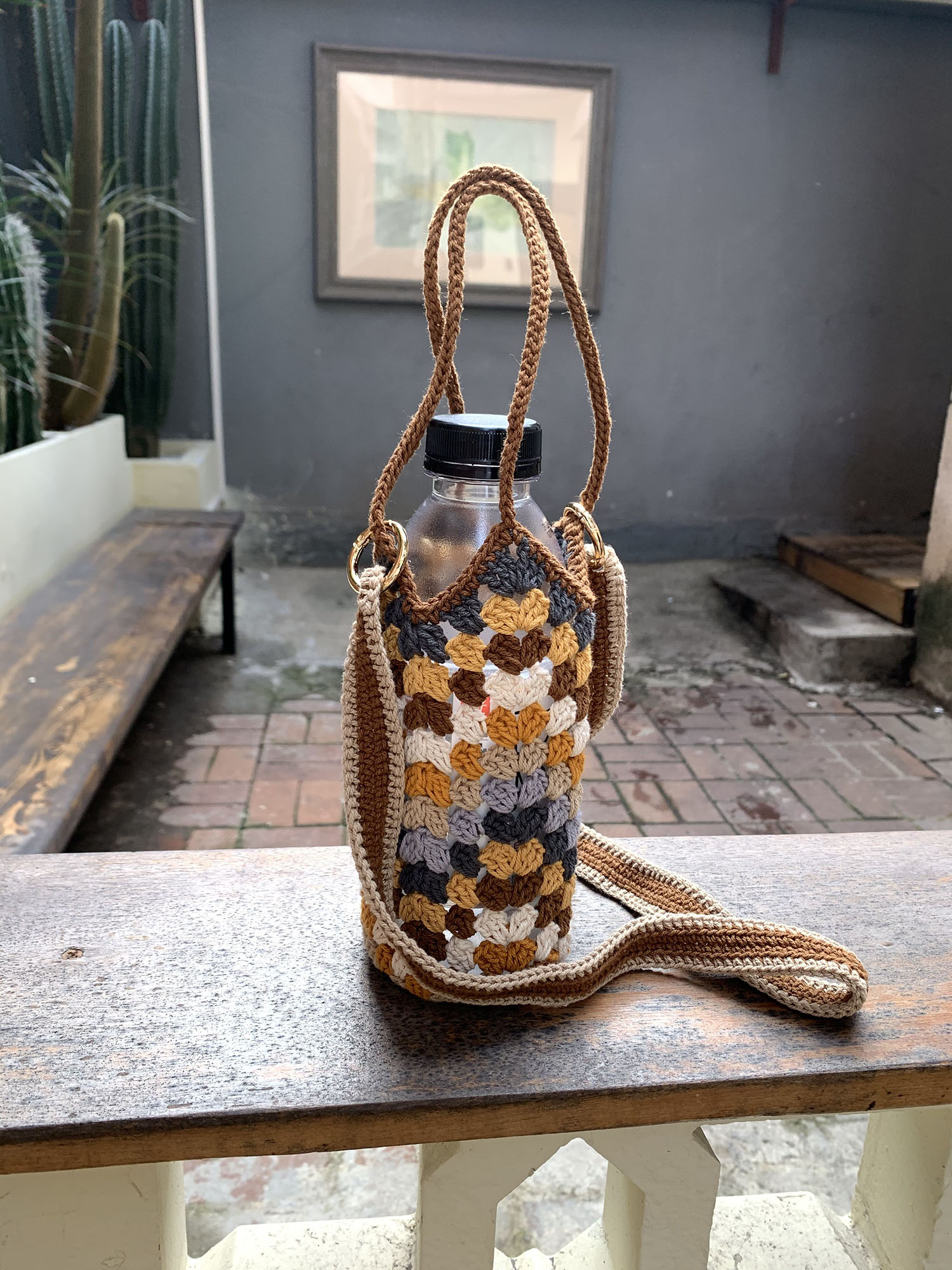 祖母格水壶包杯套材料包送视频钩针工具DIY9股棉麻线手工编织袋
