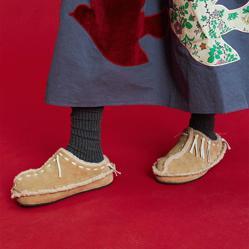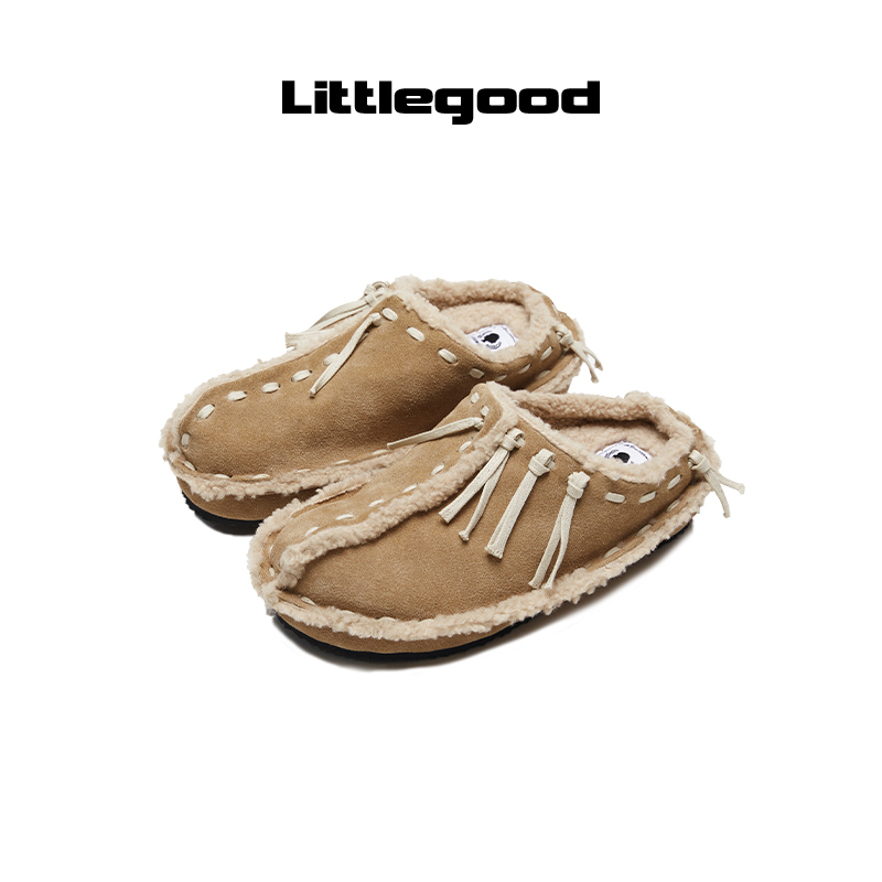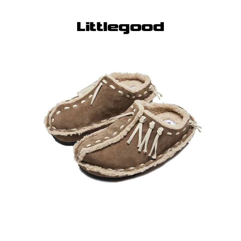【保暖系】littlegood复古包头拖鞋女新款冬季外穿百搭加绒拖鞋,广东 佛山