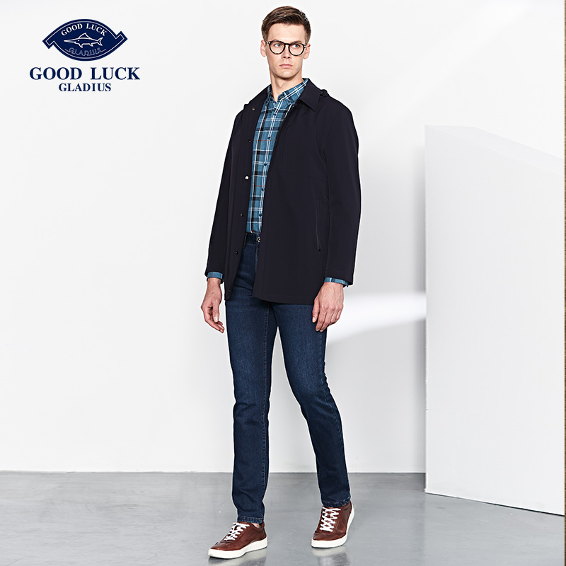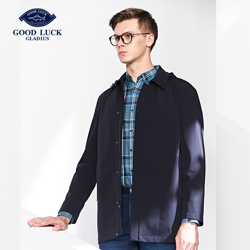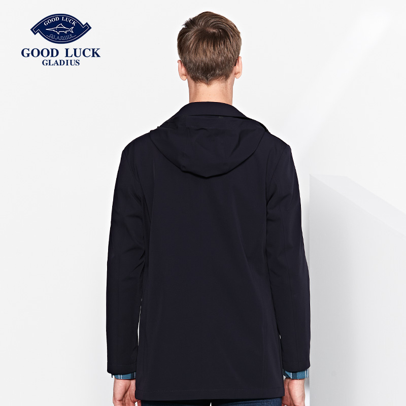 德鲨秋季新中长款商务外套男青年时尚可脱卸帽男装风衣BR15603,浙江 杭州