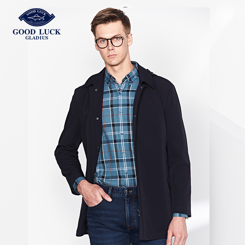 德鲨秋季新中长款商务外套男青年时尚可脱卸帽男装风衣BR15603