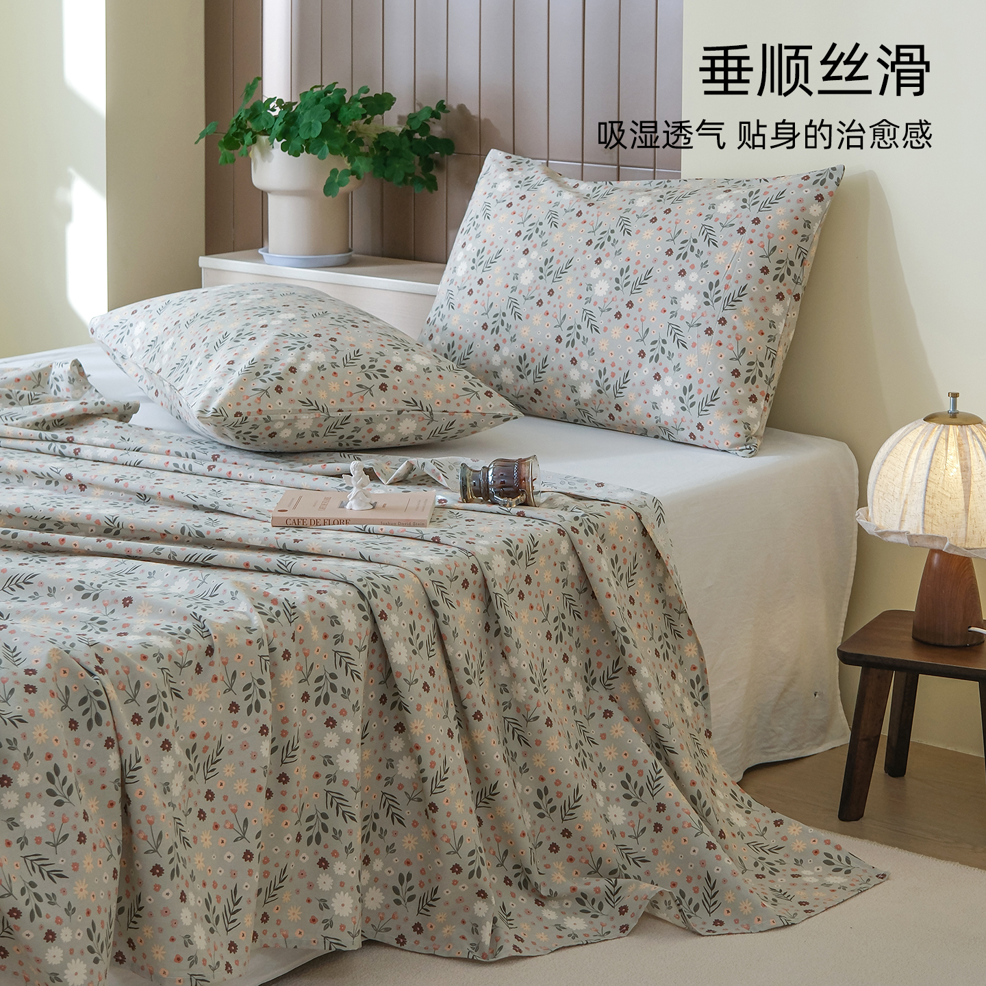 高支纯棉水洗棉床单单件贴身不起球宿舍家用被单全棉三件套